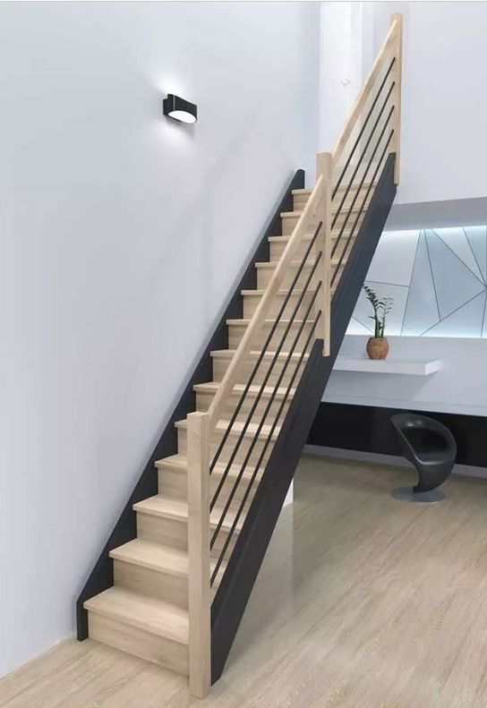 DOLLE HELSINKI - schody rovné s podstupnicemi, dub nelakovaný/černá, zábradlí pruty