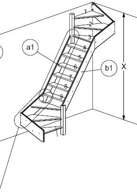 Zábradlí není součástí schodů. Lze jej namontovat na pravou nebo levou stranu.