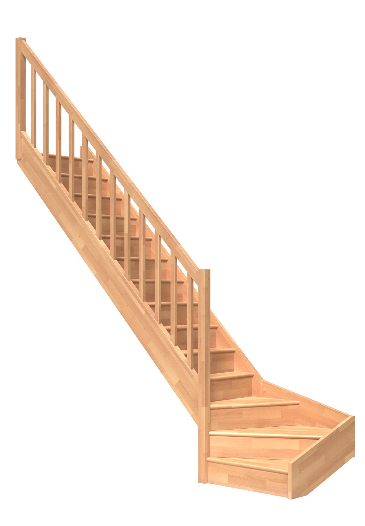 DOLLE PARIS - schody 1/4 levé s podstupnicemi, se zábradlím dřevěné sloupky,buk lakovaný/nelakovaný