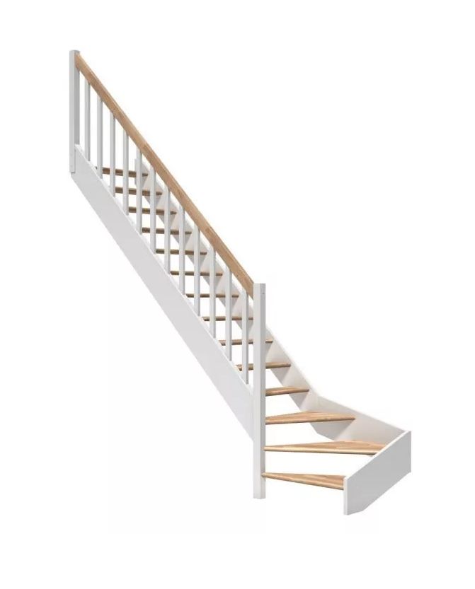 • Dodávají se přímé (14 nášlapů/ 15 převýšení pro výšku do 280,5cm) , nebo se zatočením o 1/4 (16 nášlapů/ 17 převýšení pro výšku do 318cm). Se zatočením musí být jedna bočnice kotvena do stěny.