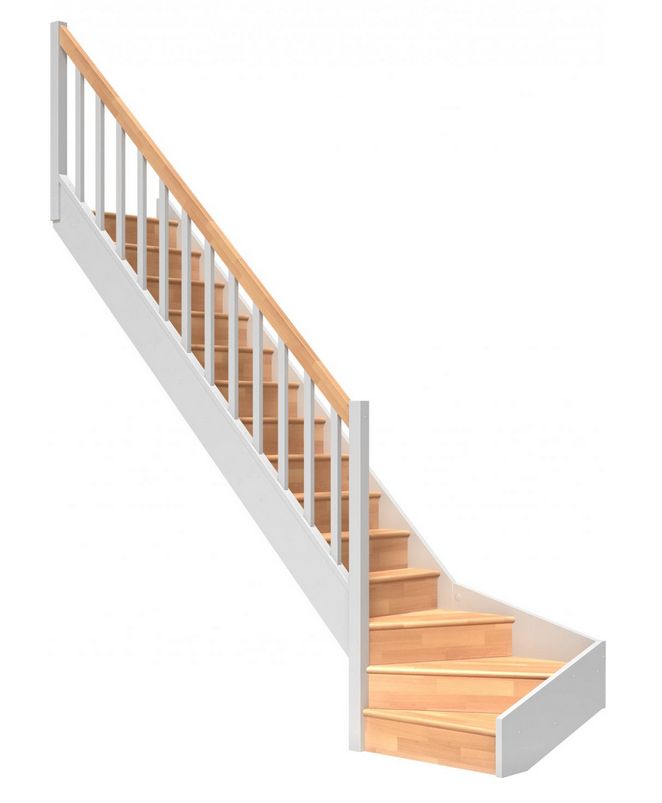 - DOLLE PARIS - schody1/4 levé s podstupnicemi, se zábradlím dřevěné sloupky, buk-dub lakovaný/bílá